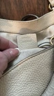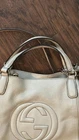 Elevate your everyday style with this authentic Gucci Soho tote bag. Crafted from premium beige leather, this medium-sized tote features a solid pattern and a 7-inch handle drop, making it perfect for casual occasions. The gold hardware adds a touch of elegance to the bag, while the interlocking GG logo and skeleton keys key chain ensure that your belongings are secure. This unisex tote bag is a part of the Gucci Soho product line and is made in Italy. The beige exterior and lining color match perfectly, making it a versatile addition to your wardrobe. Whether you're running errands or going out with friends, this Gucci Soho tote bag is the perfect accessory to complete your look.