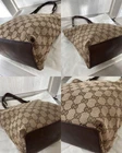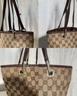 GUCCI Tote Bag GG Canvas Leather Vertical Large Capacity Beige