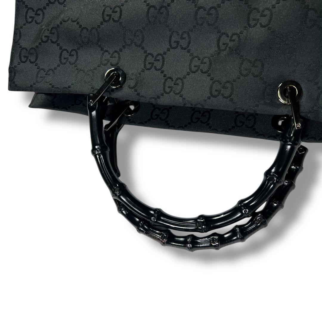 This GUCCI bamboo tote is absolutely stunning—the black GG pattern is timeless and chic. It fits A4 documents perfectly, making it both stylish and practical. The craftsmanship is top-notch, and even though it's pre-loved, it's in great condition. Love that it ships from Japan with secure packaging! A must-have for any fashion lover.