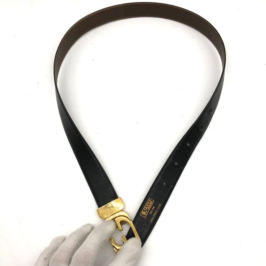 $ 92.67GUCCI buckle belt GG Logo Leather Men's hardware Used Made in Italy Black Gold