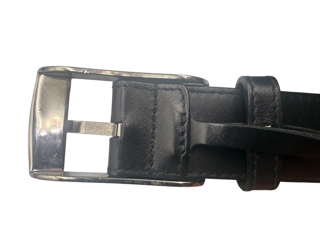 $ 13.2GUCCI buckle belt GG Logo Leather Gold Silver hardware Made in Italy Black