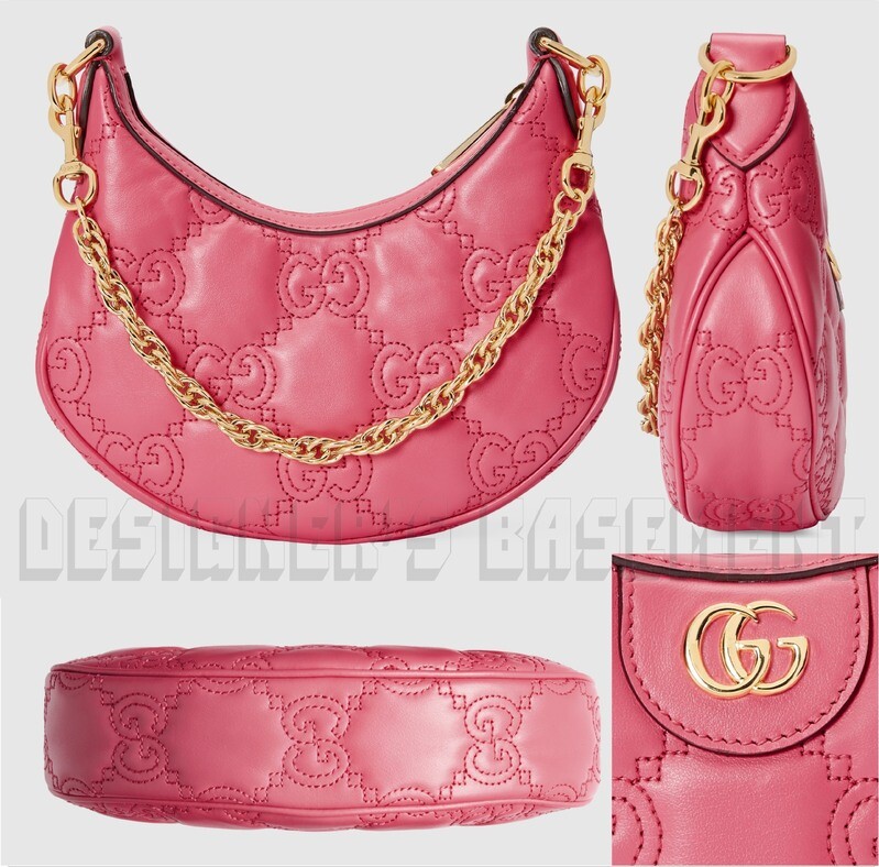 GUCCI mini pink GG Matelasse quilted Leather Double G chain shoulder crossbody bag NWT Authentic $2,590! Brand New Authentic GUCCI pink GG Matelasse quilted Leather gold Double G chain shoulder crossbody mini bag This compact mini bag from Pre-Fall 2023 collection is presented in pink GG Matelassé leather and further enriched with a Double G emblem. RP: 2,590 Style: 739736 Made in Italy Length: 8 in Height: 5.5 in Depth: 2 in Pink GG Matelassé quilted leather Zip top Detachable chain top handle with 9 in drop Plus Detachable leather crossbody strap with 18-21 in drop 1 large compartment 1 inside pocket Gold Double G logo piece on front Leather inner pocket with serial number embossed inside Gold-tone logo engraved hardware Fits up to: iPhone Pro, Airpods, small wallet, and lipstick Comes with authenticity/care cards and Gucci dust bag (no box) Originally sold for $2590 !!! You'll love it!