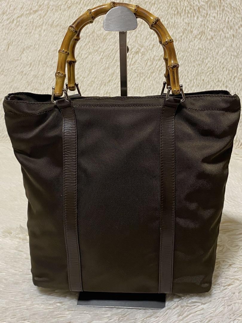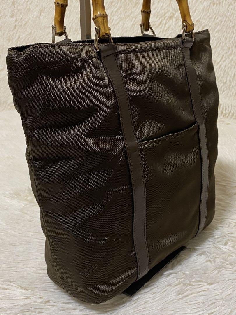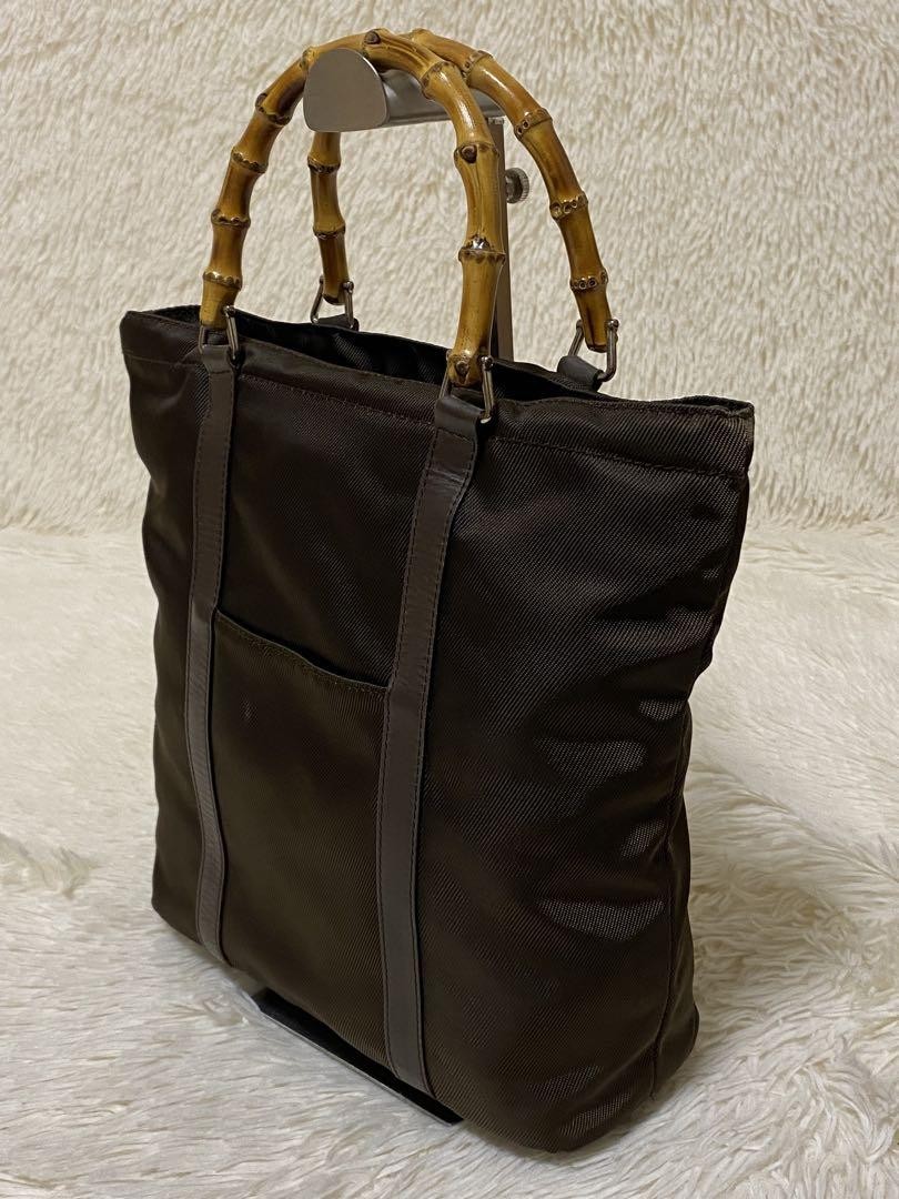 GUCCI tote bag bamboo nylon leather brown in excellent condition