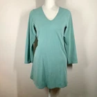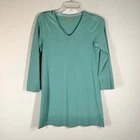 GUDRUN SJODEN Women Organic Cotton Knit Tunic Top Can be worn as a tunic, swim cover-up, or mini dress (depending on height) Size: XS Organic Cotton knit - very soft, lightweight V-neck pullover Slight A-line silhouette Long sleeves Seafoam green Very good preowned condition - no noted flaws Flat lay measurements: Pit to pit: 16" Length: 30" Smoke & pet free spring, summer, vacation, spring break, beach, casual, comfortable, organic, loungewear, poolside, cruise, resort wear, lagenlook