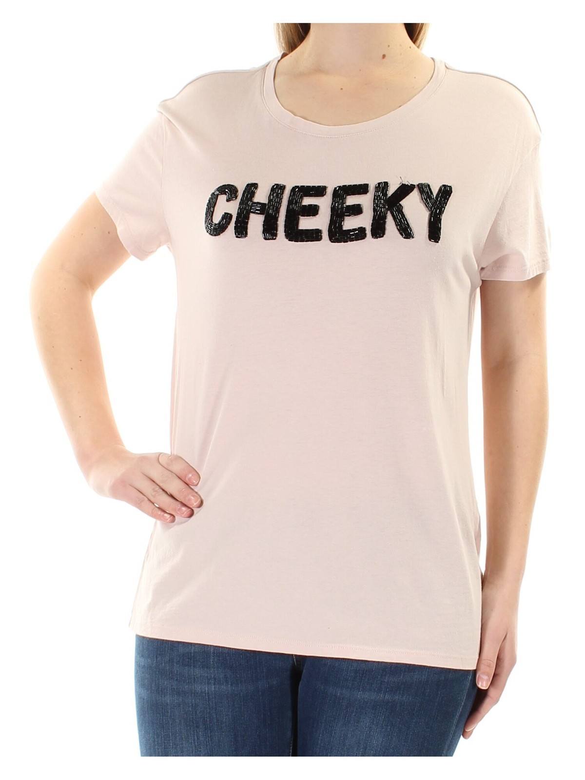 This cute pink GUESS top is soft, comfy, and has a flattering scoop neck. The beaded detailing adds a fun touch, and even with a minor missing bead, it still looks stylish. Perfect for casual outings—love the fit! Hand wash keeps it fresh. Great deal for a designer piece!