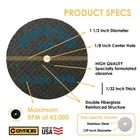 Size : 1.5" ( 2 pcs ) EFFICIENT AND SMOOTH CUTS – Gyros Fiber Disk, Resin Fiberglass Reinforced Cut-Off Wheels are specially formulated to cleanly cut High-Tensile Strength materials. With low heat generation and thin cutting line, these Fiber Disk cutting discs are ideal for professional and DIY production. They are manufactured in the USA and can work at a maximum speed of 45,000 RPM. DOUBLE REINFORCED, HIGH QUALITY – Specialty formulated fiberglass abrasive with the double reinforced structure gives our cutting discs high working efficiency, unsurpassed strength and flexibility, making them long-lasting and resistant to breakage. Gyros Fiber Disk HT Multi-Set is a must-have for Professionals and Hobbyists looking for the finest rotary tool accessories for Dremel and other top brand rotary tools. HIGH TENSILE STRENGTH – Gyros HT cutting discs are particularly manufactured to cut all Hardened and Unhardened steels, steel alloys, Hard Bronze, and Metals. The abrasive used is perfectly matched to the materials being cut resulting in superior performing cutting action. Other formulations are: LT – for Low-Tensile Strength materials like wood, plastic, stone, ceramic, aluminum, copper, brass, and glass. ST – for Super-Tensile Strength materials like stainless steel and Titanium. WORKS WITH VARIETY OF TOOLS – These cutting disks are compatible with most Rotary Cutting Tools, including Dremel tools, electric drills, hanging grinders, etc. making it the perfect rotary cutter. For best results use with Gyros Stainless Steel Mandrel SKU 80-18100. Works great with GYROS ProwerPro Rotary Tool SKU 40-00470. For your safety - always to use cutting discs with the GyrosGuard Safety Shield SKU 50-25010 MULTI-SET VALUE PACK – This Multi-Pack of Cut-Off Discs contains 2 high-quality cutting wheels which are 1 1/2 inches in diameter and 1/32-inch-thick with a center hole of 1/8 inch, with a maximum speed of 45,000 RPM. and includes 2 size-specific stainless-steel washers. A must-have rotary tool accessory for all your cutting and grinding needs · WARNING: This product can expose you to Formaldehyde (gas), which is known to the state of California to cause cancer. For more information go to www.P65Warnings.ca.gov The Gyros Fiber Disks HT are abrasive cut off wheels specifically formulated to cleanly and smoothly cut High Tensile-Strength materials such as hardened and unhardened steels, steel alloys, hard bronze, etc. Sharp cutting action produces a clean, smooth finish. The fiberglass-reinforced structure gives our cut off wheels unsurpassed strength and flexibility making them long lasting and resistant to breakage. Designed specifically for use in all motorized rotating hand tools , our ultra-sharp abrasive wheels optimize the low torque supplied by those tools found in just about every tool box. These abrasive grinding wheels will stand up to prolonged use with minimum sparking, no premature wear, and without overheating parts being cut. For your safety and protection, NEVER operate a rotary tool without the GyrosGuard Safety Shield when using cutting accessories.