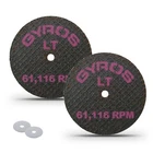 LT = Low Tensile Cut Off Wheels Specially formulated to cleanly cut Wood, Plastic, Stone, Ceramic, Aluminum, Copper and Brass HT = High Tensile Cut Off Wheels Specially formulated to cleanly cut Hardened and Unhardened steel, Steel Alloys, Hard Bronze, and Metals ST = Super Tensile Cut Off Wheels Specially formulated to cleanly cut Stainless Steel, Titanium, Hard Nickel, Carbon Alloys and Chrome Alloys Double Reinforced, High Quality – Our cutting discs have a high working efficiency, unparalleled strength, and flexibility, and are long-lasting and break-resistant thanks to a specially developed fiberglass abrasive with a double reinforced structure. Gyros Fiber Disk HT Multi-Set is a must-have for professionals and hobbyists looking for the best Dremel and other top-brand rotary tool accessories. Works with Variety of Tools – These cutting disks are compatible with a wide range of rotary cutting instruments, including Dremel tools, electric drills, hanging grinders, and so on, making them the ideal rotary cutter. Use with Gyros Stainless Steel Mandrel SKU 40-00470 is compatible. For your safety - always use cutting discs with the GyrosGuard Safety Shield SKU 50-25010 Multi-Set Value Pack – This Cut-Off Discs Sets come in 2,12, and 50 high-quality cutting wheels and some includes 2 size-specific stainless-steel washers. A must-have rotary tool accessory for all your cutting and grinding needs.
