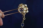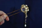 Product description: Name – Galaxy Eye Signature Made minimalist Golden Hair Pin Hair Stick With Tassel/Asian Hanfu Hair Accessory/Flower Printed Silk Bag Gift Wrapping Material Used – Copper, Alloy, Shell Flower, Water Pearl, Crystal Color – Gold+ Galaxy Blue Size: 6inches+ 2.5 Inch Tassel Weight –3 OZ What is inside the shipping box - A hair Pin Now, “LEAVE YOUR MESSAGE” service is available for free. Simply just leave what you want to say in the gift message section when checking out or email it to me. I will write them on the designed gift papers and send it out along with the order. Five Things about my hair accessories that I am proud of 1. 100% handmade, I design and build. 2. High quality, All materials I use to make my hair accessories are carefully picked and tested by me. Taking good care of a hair accessory, it will last for a long long long > 3 times. 3. Limited. It is quite unique. It is like a star on the evening sky of the New York City. SHINNING. 4. Beautiful and Stylish, Each styles of hair accessories are crafted with the combination of modern beauty and Chinese cultural element. They are not only looked different but also special. It is suitable to wear with all seasonal clothing. It is stunning to wear in a party or in a crowd. 5. Modification & Customization, I Accept changes on a existing hair accessory or full customization. It is SAME price. My YouTube Channel https://www.youtube.com/channel/UCmrSifan9PoQ6xAdnu2O2tw If you like it, Please Subscribe and share my Channel. Thank you. Delivery Information Items will be ship out in 1 - 3 business days. Custom items will be ship out 3-5 business days. If two or more items are ordered, will be ship out together Your Support is my Motive, For me to make more Beautiful Accessories for All! If you have Questions or want to know more information, Feel free to ask. Thank you!