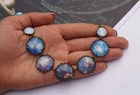 Space necklace with a star cluster. The size of the glass cabochons is 20 mm (0.8 inches) and 12 mm (0.5 inches). The length of the necklace in the picture is 45 cm (18 inches), but it can be shorter or longer by your request. This necklace is produced using a high quality print which is protected with clear glass which magnifies the artwork.