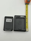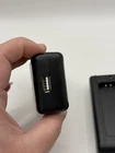 The larger one plugs into a micro usb to charge it. The smaller on can plug into the wall or usb-a. Please see all pics. Sold as is.