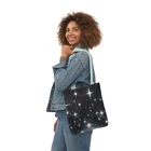 A striking galaxy sky-themed tote bag, perfect for those who love celestial designs. This versatile accessory adds a cosmic touch to any outfit and is ideal for carrying groceries, books, or daily essentials. Great for space enthusiasts and those who enjoy unique and vibrant accessories. Perfect for gifting on birthdays, holidays, or as a treat to yourself. Product features - 100% polyester canvas material for softness and comfort - Vibrant colors with crisp printing techniques - All over print for a bold and eye-catching look - Boxed corners for added room and durability - Available in 3 sizes with black interior and 5 strap color options Care instructions - Machine wash: cold (max 30C or 90F), gentle cycle - Non-chlorine: bleach as needed - Tumble dry: low heat - Do not iron