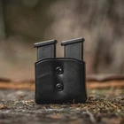 The DMC (Double Magazine Carrier) is an exceptional wrap-around design featuring two one-way snaps on back, allowing it to fasten to your belt vertically.It also includes two tension screw adjustments on front, providing a precision fit.Designed to fit belts 1"-1.25" through belt slots and 1.50"-1.75" through the belt channel. DMC18B Fits single stack .380 ACP, .32 ACP, .22 magazines and similar. Features Premium steerhide Adjustable tension units One way snap loop fits belts up to 1 3/4" Black Description The DMC™ is an exceptional wrap-around design featuring two one-way snaps on back, allowing it to fasten to your belt vertically. It also includes two tension screw adjustments on front, providing a precision fit. Constructed of premium steerhide and designed to fit belts 1" - 1 1/4" through belt slots and 1 1/2" - 1 3/4" through the belt channel. Ambidextrous design. Be sure of your order before placing it. I do not accept returns or cancellations. All sales are final. No exceptions.
