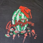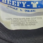 Celebrate iconic comedy with this comfortable Hanes Beefy-T featuring Gallagher's memorable watermelon-smashing act. Quality 100% preshrunk cotton for lasting wear. • 100% Preshrunk Cotton • Large (42-44) • Black with Graphic Print • Short Sleeves • Crew Neckline Top to bottom = 28 inches