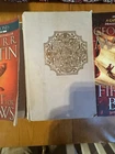 Immerse yourself in the epic fantasy world of Westeros with the complete set of "A Game of Thrones" by George R.R. Martin. This collection includes the final three paperbacks and the last two hardcover books in the acclaimed "A Song of Ice and Fire" series. Whether you're a seasoned fan or new to the realm of epic fantasy, these books will transport you to a world of intrigue, dragons, and legendary battles. Each book in this series builds upon the last, weaving a tapestry of tale and intrigue that has captivated readers worldwide. Crafted in English and proudly manufactured in the United States, this set is a must-have for adults who relish in the richness of detailed storytelling and the thrill of a meticulously constructed fantasy world. Get ready to lose yourself in the saga that has captured the imaginations of fans across the globe.