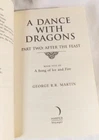 2 Book Set Dance with Dragons Part 1 & 2 Game of Thrones Series George Martin United Kingdom Publisher, 2012 Early UK printings of George RR Martin's A Dance With Dragons book was printed in 2 parts . More current printings combine the 2 parts into 1 book. Includes: A Dance With Dragons Part 1: Dreams and Dust : Paperback ISBN 9780007466061 A Dance With Dragons part 2: After the Feast : Paperback ISBN 9780007466078