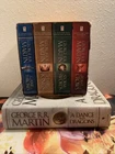 Immerse yourself in the epic fantasy world of Westeros with this 5-book set of George R.R. Martin's acclaimed series, A Song of Ice and Fire. The set includes mass market paperback editions of A Game of Thrones, A Clash of Kings, A Storm of Swords, and A Feast for Crows, as well as a hardcover edition of the last book A Dance with Dragons. Experience the action, adventure, and fantasy that has captivated millions of readers worldwide. This set is perfect for fans of the hit TV show, as well as those who have yet to experience the epic tale. Get lost in a world of dragons, kings, and queens, and join the battle for the Iron Throne.