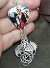 These earrings are made with guitar picks featuring Daenerys Targaryen of Game of Thrones. I used silver toned metal chain to dangle two 6mm genuine Swarovski crystal bicones - one jonquil (pale yellow) and one red - as well as a large dragon charm from each earring. They are 4.25 inches long from the top of of the ear wire curve to the very bottom of the whole earring, and they have surgical steel earwires (nickel free, hypoallergenic). To get an idea of how long the earrings will be on you, start from where your ear is pierced and measure down. All of my jewelry and accessories are handmade by me. Made in and shipped from Lubbock, TX. USA Flat Rate Shipping. You pay for shipping on the first item, all additional items have no additional shipping fees. 03432