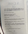 Immerse yourself in the world of Westeros with this stunning collector's edition of George R.R. Martin's epic fantasy series, "A Game of Thrones." This leather-bound book set includes all five volumes of the acclaimed "A Song of Ice and Fire" series, making it the perfect addition to any book lover's collection. Experience the excitement of the game of thrones as you follow the tales of the Starks, Lannisters, Targaryens, and all the other powerful and treacherous families fighting for the ultimate prize. This edition is a must-have for any fan of the show or the books, with beautiful leather binding and gold lettering. Don't miss out on this rare and highly sought-after collector's item.