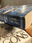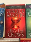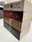 Adult owned Read once No sign of wear on 2-5 Most wear on book 1 but does not effect readability Spine in pristine condition Complete set 1-5 Will be shipped via media mail in a small box Unless otherwise selected The product is a complete series of George R.R. Martin's epic fantasy novels, "A Song of Ice and Fire." This 5-book set, published by Del Rey Books, includes the first book titled "A Game of Thrones." The novels cater to both young adult and adult audiences, offering a captivating narrative in the genres of adventure, fantasy, and science fiction. Each paperback book is in English and was originally published in 2003 in the United States. Perfect for fans of fantasy literature, this set is a must-have for anyone looking to delve into the world of Westeros and beyond.
