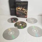 Pre-owned HBO's Game Of Thrones Seasons 1, 2, 3, and 4 DVD. This discs are all in overall good condition with only very minor wear. The DVD cases have some wear and scuffs marks on them. Season 1 and 3 are missing their case covers Please see photos for details. Ships USPS Media Mail