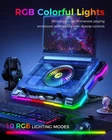 Rapid Cooling: Our cooling pad features a 5.5 inch large-diameter turbofan and sealed foam, providing 360-degree surrounding cooling with no air leakage. Adjust the fan speed from 0-2200 RPM to tailor cooling for office work, gaming, and various modes. Ergonomic Comfort: With 8 height adjustments, the gaming laptop cooling pad allows you to find the perfect angle to effectively relieve back and neck fatigue. LCD Display: The simple and intuitive LCD on the gaming cooler pad shows your current fan speed. Easily control the RGB lights with touch buttons to enhance your gaming experience. 10 RGB Light Modes: Enjoy vibrant RGB lights with numerous lighting options, creating a cool gaming atmosphere. Widely Compatibility: Compatible with gaming laptops from 15.6 to 19 inches, this computer fan is ideal for gamers, graphic designers, and video editors seeking reliable cooling solutions.