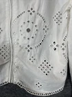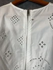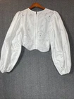 The Ganni Women's White Broderie Anglaise Cropped Fitted Blouse Top in size 36 is a stylish and versatile piece perfect for summer and spring. Made from 100% cotton, this blouse features a white color and a cropped style that adds a modern touch to any outfit. The fitted design hugs your curves for a flattering silhouette, making it a fashionable choice for women looking for a chic and comfortable top.