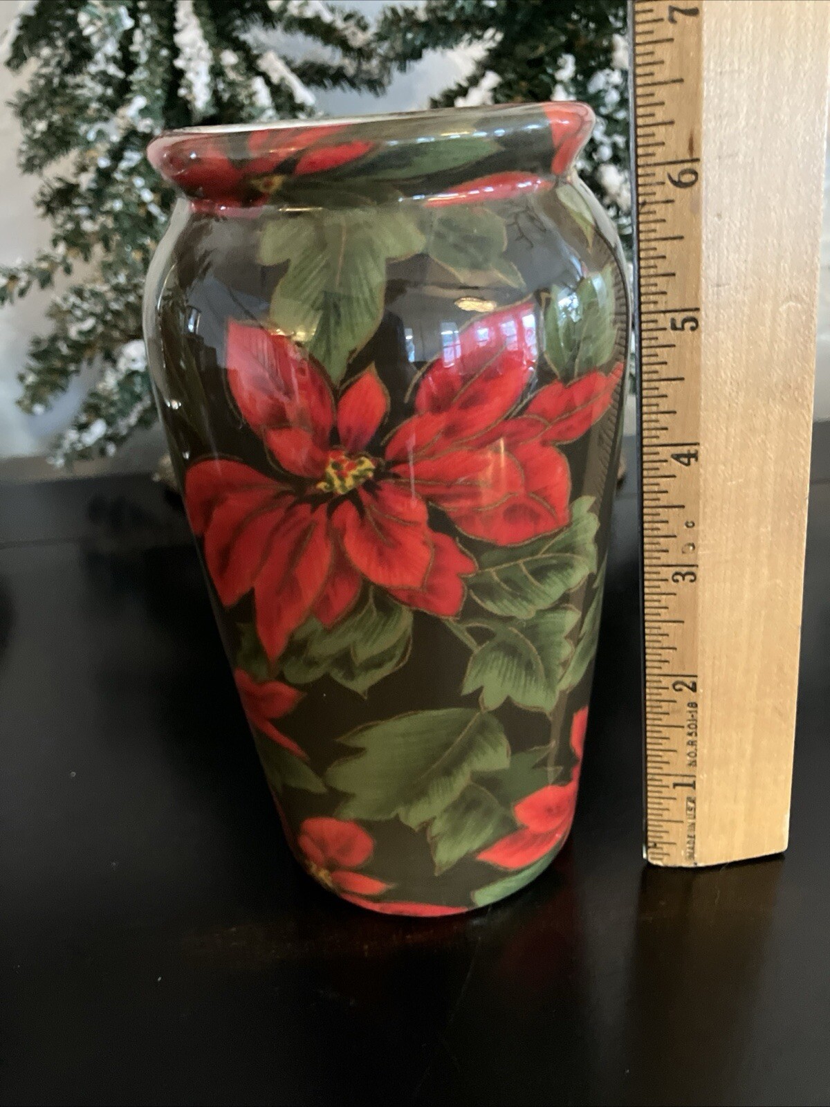 Ganz Poinsettia Vase, Beautiful Red, Green, Black 6.5" tall