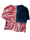This Gap T-shirt is a cropped style with an American Flag tie-dye design, perfect for a patriotic and grunge-inspired look. Made of 100% cotton in a relaxed fit, this unisex top features a crew neckline and short sleeves, making it ideal for casual wear or travel. The red, white, and blue color scheme and 4th of July theme add a patriotic touch, while the versatile design allows for styling with a variety of outfits for a beachy, classic, or designer look. Excellent condition