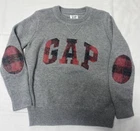 Gap Boys Size XS (4-5) Kids Grey crewneck sweater buffalo plaid logo and elbows Pre owned in great condition