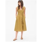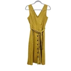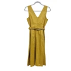 Gap Linen Dress Sleeveless with a V-neckline. Side pockets. Button front detailing. Banded waist. Tie belt included. Good condition. One thread belt loop is partially detached. Size 2 (approx, on hanger) pit-pit 17” length 45” Color: antique gold (brand color)