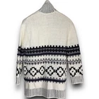 This Gap designed & crafted cardigan is a regular size XS sweater, featuring a white multicolor chunky knitted Fair Isle pattern with striped knit edging on collar. Made from an ultra soft plush blend of wool, nylon, acrylic, and alpaca, it offers a chic Nordic theme light stretch with long sleeves and an open front. Perfect for indie sleaze grunge nature boho granola core aesthetics. Great pre owned condition with lots of life to give! Laid flat measurements; chest 22” length 28” sleeves 21” Keywords: Gap, cardigan, sweater, multicolor, Fair Isle, wool, alpaca, Nordic, chic, casual, fall, women's fashion, open front, long sleeve, pre-owned cable chunky knitting diamond knit fisherman farmers daughter hikingg outdoorsy crunchy