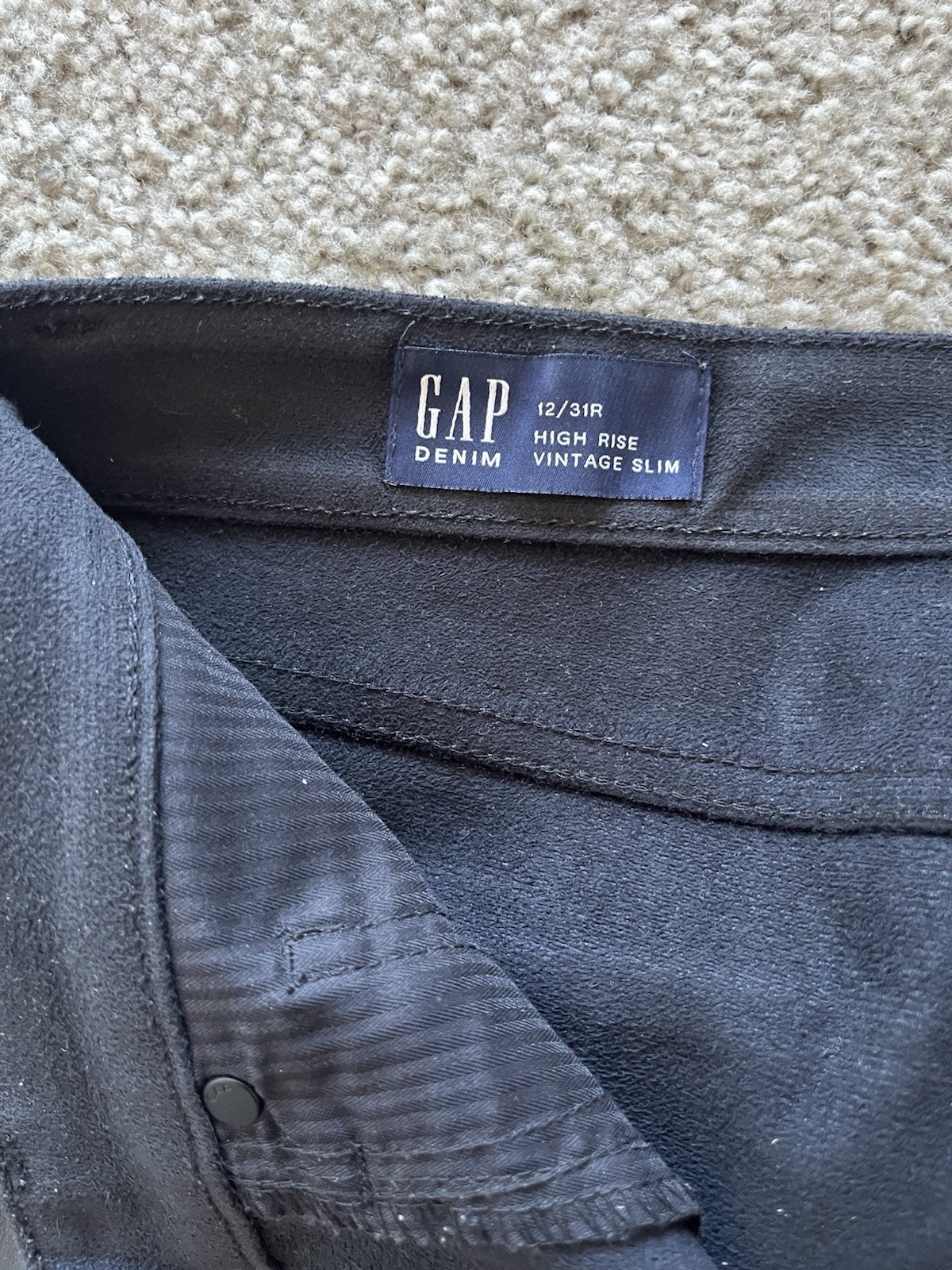 The Gap Faux Leather High-Rise Vintage Slim Pants in women's size 31/12R are a stylish and edgy addition to any wardrobe. Made from a combination of faux leather and polyester, these black pants feature a solid pattern with a zip closure. The slim fit and straight leg style offer a flattering silhouette, while the mid-rise waist adds a touch of vintage charm. Whether you're going for a hipster, festival, or biker look, these pants are versatile enough to accommodate a variety of styles. With a sleek design and slimming features, these pants are perfect for any fashion-forward woman.