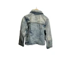 This trendy blue denim jacket made by Gap Kids is perfect for your little fashionista. The jacket features a bomber style with a collared neckline, long sleeves, and a snap front closure. It has a solid pattern and is made of 100% cotton outer shell material with cotton lining material, making it comfortable to wear in any season. The jacket is machine washable and has pockets, making it a practical choice for casual occasions. It is a regular fit with a chest size of 25 and size 5. The jacket has a stretch feature and is not handmade. This stylish denim jacket is suitable for girls aged 5 years and is perfect for winter, summer, fall, and spring.