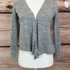 Gap Kids Little Girls Rayon Solid Soft Gray Comfy Open Cardigan Light Sweater > Condition: Excellent > Size: Large 10-11 years > Little Girls Open Cardigan Light Sweater > Solid Soft Gray Color > V-Neck > Long Sleeve > Cozy Comfy > Brand: Gap Kids > Front Length: 20 inches > Pit to Pit: 18 inches > 48% Polyester, 48% Rayon, 4% Spandex > Smoke/Pet Free