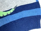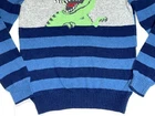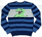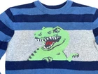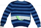 Gap Kids Green T-Rex Tail Dinosaur Gray Blue Striped Double-Sided Long Sleeve Pullover Sweater Top ~ Boy's Size L - Large 10. Measures: 16" flat across the front from underarm to underarm unstretched and 21" from shoulder to bottom hem. Great gently used condition with a couple small spots on the lower back, see pics.