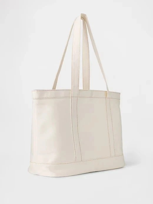 Fit & Sizing Dimensions: 13" H x 7" W x 22.5" L product details Soft cotton denim tote bag. Shoulder straps. Snap button closure. Outer and inner patch pockets. Embroidered mini Gap arch logo at front. White wash. Responsibly Made:This tote bag is part of our Washwell program, which uses at least 20% less water as compared with conventional wash methods. We’ve saved over a billion liters of water through Washwell since 2016. This product was made in a factory that invests in gender equality and women’s empowerment. Through RISE (Reimagining Industry to Support Equality) and Gap Inc.’s program P.A.C.E. (Personal Advancement & Career Enhancement), we support people who make our clothes to build the skills, knowledge, confidence, and resilience needed to advance in work and life fabric & care 100% Cotton. Machine wash cold, gentle cycle. Lay flat to dry. Imported..