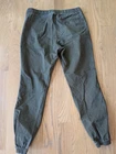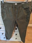 Good pre owned condition men's Gap Essentials Joggers in size Medium. Fabric is an olive colored twill. Ankles as re gathered, as shown in photos.
