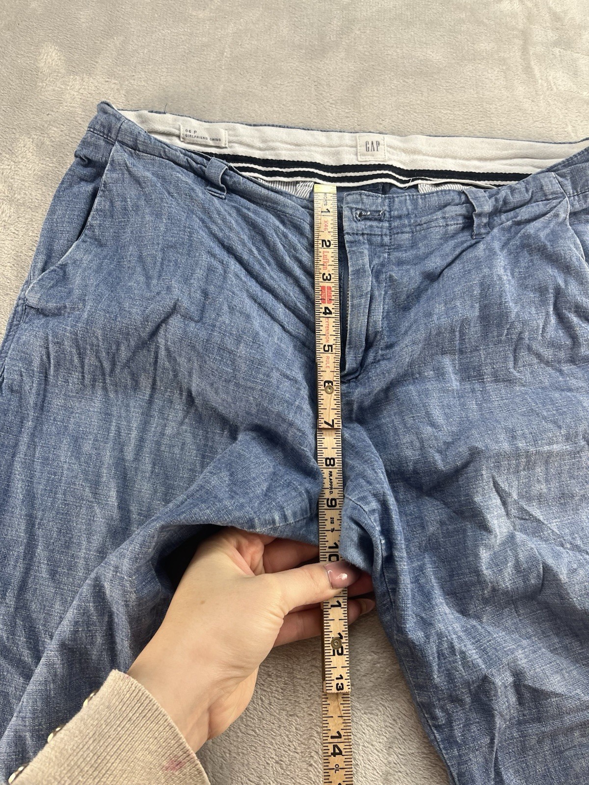 The Gap Women's 6 Blue Heathered Girlfriend Chino Pants are a versatile wardrobe staple perfect for various occasions including casual outings, workwear, and formal events. Made from a comfortable cotton blend fabric with chambray color and a mid-rise waist, these pants feature a zip and button closure, straight leg style, and a 25-inch inseam. The pants also include convenient pockets, stretch for ease of movement, and are machine washable for easy care. Ideal for all seasons, these Gap pants are a timeless addition to any woman's closet.