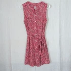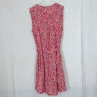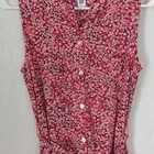 Gap size small pink base with Microfloral print allover sleeveless collarless button front side pockets removable sash knee length teacher vibes excellent used condition measurements armpit to armpit 18 length 35