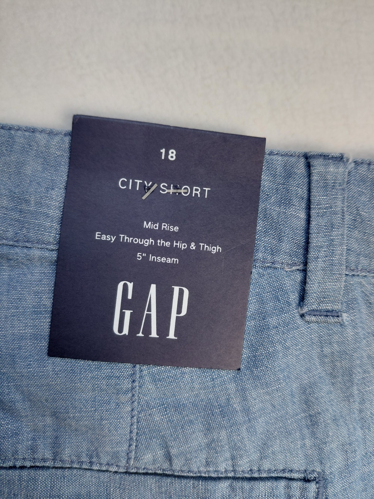 Gap Shorts Women's Blue Chambray City Casual Chino Mid Rise 5" Inseam Size 18 Cotton 4 Pockets Lightweight material NEW. Please, refer to measurements to ensure a good fit. Measurements taken with garment lying flat (not stretched) and are approximate. Smoke Free Home. Please, let me know if you have any questions. Thanks! RETURNS (Buyer Pays Return Shipping) (Please Note: Original Shipping Charges Paid by the Buyer Will Not Be Refunded.) RETURNS: Unless the listing states otherwise, items may be returned within 30 days for a refund of the purchase price (excluding original shipping paid by buyer) provided the item is returned in the same condition as it arrived with all items included. If factory sealed, it must be returned unopened, and factory sealed. All other items, new or used must be returned in the same condition in which they arrived, any damage, stains, wear, use or missing part will be reduced from the refund price. REFUNDS If item is returned in original condition as stated in the "Returns" section, the item purchase price will be refunded. ORIGINAL SHIPPING CHARGES PAID BY THE BUYER WILL NOT BE REFUNDED. Color Disclaimer : Actual item colors may vary due to the fact that each computer, tablet or phone may display colors differently and everyone may see these colors differently. We try to edit our photos to show items as true to life as possible, but please understand that actual color may vary slightly from your screen. Please note : When we describe an item as "Used" or "Vintage" please understand that they are not new. They may show signs of use or wear, however we do our best to point out any noticeable marks or blemishes using our photos and descriptions.