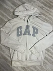Gap Size XS Cream Gray Long sleeve Logo Full Zip Hoodie Sweater Pre-owned Shows signs of usage such as staining around edges of sleeves, back and front of sleeves Please review all photos Comes from a smoke and pet free home Shipped out with care