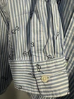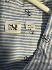Crafted for comfort and style, this Gap women's long sleeve button-down shirt is a versatile addition to any wardrobe. The shirt features a classic striped pattern in a soothing blue hue, offering a fresh take on a timeless design. The collared neckline and button closure lend a smart look, perfect for both casual and more polished occasions. In a generous XXL size, this shirt is cut from 100% cotton fabric, ensuring breathability and softness against the skin. The eye-catching eyeglasses theme adds a whimsical touch to the shirt's overall aesthetic. Designed with care in Vietnam, it's a piece that promises both durability and effortless wear.