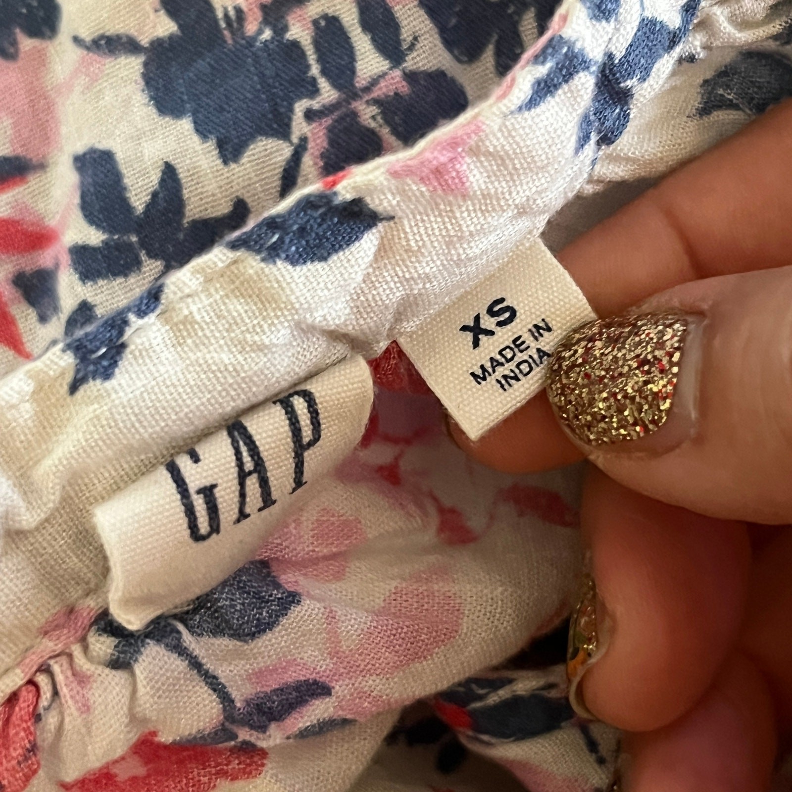 Add a touch of boho charm to your wardrobe with this Gap Women's Floral Peasant Blouse in size XS. Made from a soft, breathable cotton-rayon blend, this lightweight top features a flattering V-neckline, relaxed fit, and 3/4 length sleeves with gathered cuffs for a romantic, feminine silhouette. The delicate floral pattern adds visual interest and is perfect for spring, summer, or layering year-round. Ideal for casual outings, work-from-home days, or weekend brunches, this versatile blouse pairs effortlessly with jeans, shorts, or skirts. Designed for comfort and everyday style, it's a go-to piece for effortless dressing. Machine washable and easy to care for. Elevate your casual look with this pretty and practical piece from Gap. Measurements are approximate/flat Preowned used condition Smoke free pet friendly store Gap women's blouse, floral v-neck top, peasant blouse, 3/4 sleeve shirt, cotton rayon top, boho style, casual chic, spring blouse, size XS, breathable fabric.