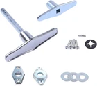 Garage Door Lock Dummy T Handle Assembly Non-Locking Door Hardware Kit (Without Keys) Chrome Plated 1. This Garage Door Lock T - Handle is used on: many different brands of garage doors and overhead door 2. Dummy T Handle kit including: Bright chrome finish complete with inside and outside mounting handles 3. all required mounting hardware and fasteners Zinc plated 5/16¡± square x3¡± long shaft extension 4. M8 mounting screws BUT NO KEYS 5. Fits Up To 2 Inch Thick Doors Dummy T Handle Works: Working in conjunction with key cylinder, inside dead bolt & lock disc Garage Door T Handle Including: Bright chrome finish complete with inside and outside mounting handles Includes all required mounting hardware and fasteners Zinc plated 5/16inch square x3inch long shaft extension M8 mounting screws No Keys Fit up to 2inch thick doors (Including 2inch) This lock handle is used on many different brands of garage doors Overhead door, Amarr, Clopay, Raynor, CHI, Hass, Stanley, Wayne Daloton And others 4.13 "w x 4.13 "w. Weight: 7.7 oz Shape T-Shaped Finish Type Silver Number of Items 1 Product Dimensions 4.13"L x 4.13"W Batteries Included? No Unit Count 1 Count Batteries Required? No Finish Silver Exterior Finish Chrome Material Zinc Item Depth 4.9 inches Handle Material Zinc Package Type generic box" or "standard shipping box Metal Type Zinc Specific Uses For Product Door Item Package Quantity 1 Indoor/Outdoor Usage Outdoor Item Weight 7.7 ounces Size Normal Lock Type Key Lock Special Features Keyless, Easy to Install Special Feature Keyless, Easy to Install Color sliver Hand Orientation Ambidextrous Center To Center Spacing 3.8 Centimeters Included Components As picture Style T-HANDLE Handle Type Pull Handle Number Of Pieces 1, 2, 3, 4, 5