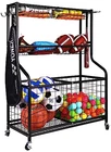 30 Days Return Policy Fast Delivery Trusted seller Garage Sports Equipment Organizer, Garage Ball Storage, Sports Gear Storage, Garage Organizer with Baskets and Hooks, Rolling Sports Ball Storage Cart, Black, Steel, Multiple Styles Product Description AMPLE STORAGE CAPACITY - This storage almost holds all your sports stuff: different sorts of balls, yoga mat, knee pad, stretch strap and more. EASY TO ASSEMBLE - All tools included. Follow the step by step instructions to assemble effortlessly. SPORTS ORGANIZATION SOLUTION - Totally make your place clean and neatly. Ideal for the garage, home, Storage room, playroom, gym, playgroup and school dorm. SMOOTH ROLLING BALL RACK - Features in 4 heavy-duty wheels, indoor and outdoor design, which is easy to move the cage anyw and fits in a specific position. Great for basketballs, volleyballs, soccer balls and footballs. DURABLE STEEL CONSTRUCTION - Made of a durable coated steel frame, the organizer offers long-lasting strength and impressive performance. Simple structure makes it easy to install with the help of instruction. Shipping Returns Payment Shipping Shipping is FREE to all addresses other than APO/PO boxes in the lower 48 states. All our stock ships from US-based warehouses. Shipped via USPS or UPS (depending on location and package weight) Unless stated otherwise, all orders will ship within 24-72 hours of your payment being processed. Check our feedback to see the great reviews of FAST shipping we offer. Returns As our valued customer, we will do our best to make sure the product you receive arrives to you on time and as expected. If you are not satisfied with your purchase, please contact us within 30 days of receiving your order to process a return. Payment We currently accept payment via eBay managed payments only. Once payment is cleared, we will dispatch your shipment within 1-3 business days. Please refer to the "Shipping" tab for more information regarding shipping speed to your destination.