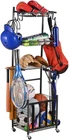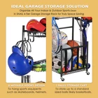 【IDEAL GARAGE STORAGE SOLUTION】- SNAIL 4-Tier Garage Sports Equipment Storage Organizer features 4 major storage parts: 6 Movable Heavy Duty Hooks for hanging; 2 Mesh Wire Baskets for sports balls such as baseballs, tennis balls, badminton balls etc.; 1 Shelf for sports gloves, baseball bats and badminton rackets; 1 Storage Cart with Elastic Straps to hold up to 6 standard sized balls. Organize all your indoor & outdoor sports goods in this storage rack for truly space saving 【DURABLE & LONG WORKING LIFE ROLLING CART】- The Sports Ball Storage Rolling Cart is constructed out of heavy duty powder coated steel to resist chipping, peeling and rust, which ensures a long lasting working life. The middle steel pole makes the storage organizer more stable and decreases the risk of shaking 【MOVABLE & ELASTIC STRAPS DESIGN】 - SNAIL Garage Ball Storage Rack features 4 heavy duty 360-degree wheels(2 lockable), making it easy to move indoors and outdoors. The ball cage rack also gets 4 elastic straps to maximize storage space and allow easier to storage or take balls out 【WELL PACKED FOR QUICK & EASY INSTALLTION】 - Simple structure along with well packed parts and well-written instruction makes it quick and easy to install. All you need is a Philips head screw driver in your toolbox storage case 【SUITABLE FOR MANY OCCASIONS】- The assembled rolling storage cart features 17.6"L x 13"W x 59.4"H. Measure the place you want to place it to make sure the ball cage could well fit your garage. This sports storage rack can help you organize your kids' sports gears and make your place clean and neatly. Ideal for the garage, home, storage room, playroom, gym, basement and utility room SNAIL SPORTS BALL STORAGE ROLLING CART SNAIL Garage Sports Equipment Storage Organizer features 4 major storage parts: 6 Movable Heavy Duty Hooks for hanging; 2 Mesh Wire Baskets for sports balls such as baseballs, tennis balls, badminton balls etc.; 1 Shelf for sports gloves, baseball bats and badminton rackets; 1 Storage Cart with Elastic Straps to hold up to 6 standard sized balls. Organize all your indoor & outdoor sports goods in this storage rack for truly space saving. The Sports Ball Storage Rolling Cart is constructed out of heavy duty powder coated steel to resist chipping, peeling and rust, which ensures a long lasting working life. The middle steel pole makes the storage organizer more stable and decreases the risk of shaking. The assembled rolling storage cart features 17.6"L x 13"W x 59.4"H. Measure the place you want to place it to make sure the ball cage could well fit your garage. This sports storage rack can help you organize your kids' sports gears and make your place clean and neatly. Ideal for the garage, home, storage room, playroom, gym, basement and utility room. PRODUCT SPECIFICATION: Product Size: 17.6"L x 13"W x 59.4"H Product Material: Metal Assembly: Required Package Included: 1 x Rolling Storage Organizer; 1 x Instruction