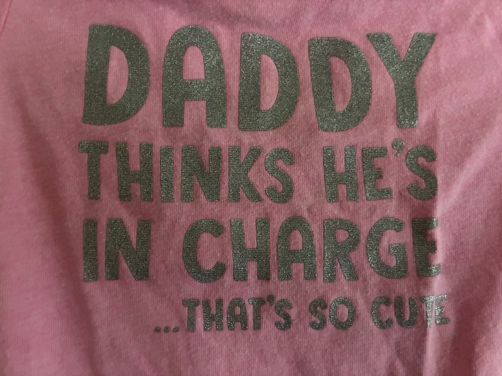 Pattern: Graphic Print Brand: Garanimals Material: 60% Cotton, 40% Polyester Set Includes: Bodysuit Department: Girls Features: Comfort, Easy Care, Lightweight, Stretch Garment Care: Machine Washable Occasion: Casual Neckline: Crew Neck Sleeve Length: Short Sleeve Number of Pieces: 1 Piece Fabric Type: Blended Fabric Type: One-Piece Season: Fall, Spring, Summer Color: Pink Country of Origin: Bangladesh Size: 18 Months Materials sourced from: Bangladesh Style: Bodysuit Accents: Button, Glitter Seller Notes: “In very good condition. Free of rips or stains.” Theme: Dad Closure: Snap
