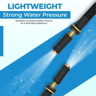 GARDEN HOSE: Unmatched flexibility, durability, and flow. Its lightweight, full-length, Patent-Pending multi-layer design provides reliable, leak-performance for long-lasting utility. [This hose does NOT expand or retract] EFFICIENT WATERING & CLEANING: This kink-resistant full length hose makes gardening, vehicle washing, and cleaning tasks effortless. Featuring an ergonomic handle and a robust 5/8” middle layer, it delivers strong, steady water flow while remaining static in length, offering stability and reliability for various applications. HIGH PRESSURE TOLERANCE: Designed to work with most pressure washers and sprinklers, the hose excels in handling high-pressure water. Its durable construction with PVC, foam, and polyester outer webbing ensures it resists cracks and leaks, maintaining structural integrity even under intense use. UNIVERSAL COMPTABILITY: With standard GHT 3/4" brass connectors, this hose offers universal compatibility, seamlessly integrating with a wide range of faucets, , and nozzles. Providing efficient watering and cleaning without compatibility issues. [This hose does NOT expand or retract]