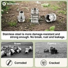 RELAX YOUR WRIST: Garden hose quick connect is an indispensable addition for watering. It makes changing and attaching different hoses and sprayer attachments simple. No more standing there unscrewing, save time and effort. UNIVERSAL: Quick release hose connector with standard 3/4 inch GHT fitting. Add it to every connection point you can: pressure washer pump, garden hose, faucet, hand sprayer, lawn sprinkler. WELL MADE STAINLESS STEEL: The copper connectors tend to corrode then get stuck onto the end of hose, the plastic ones crack easily. Stainless steel is more damage-resistant and strong enough. The adapter parts connected smoothly and securely without breaking, rusting and leakage. VERSATILE: With the fittings, no need to leave your hoses and sprayers outside during bad or cold weather, prevent parts from damaging and freezing, extend their service life. You can also easily attach and detach multiple lengths of hose as needed, they provide more possibilities for your gardening. : provides professional services, always stand behind customers and products. We'll help you to solve any problems, and have a quick reply within 24 hour.