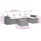 Size: Large This 6 Piece Garden Sofa Set mixes modern design with comfy practicality, making it the go-to for outdoor relaxation and chit-chat. The striking black and cream color combo, along with the woven poly rattan texture, gives an elegant look that goes with any garden, patio, or balcony. With modular bits that let you rearrange it, this set adapts to your social scenes or chill time, providing plenty of room for up to six adults to soak up the outdoors in comfort and style. The strong materials used mean it'll handle the weather, making it a staple in your outdoor furniture collection. Modular Design: Rearranging the pieces allows you to tailor it to your outdoor areas. Durable Materials: Built with UV-resistant poly rattan, it can handle direct sunlight without fading. Comfort: Soft cushions give you a great seating experience, with removable covers for easy cleaning. Elegant Appearance: The matte finish and cream accents really elevate your garden decor. Space Efficient: This set's generous seating for six makes it perfect for entertaining without taking up too much space. Color: Black Shape: Rectangular Material: Synthetic Poly Rattan Finish: Matte Indoor/Outdoor: Outdoor Only Cover Included: No Room: Garden and terrace Capacity: Can hold up to 242.5 lbs per seat. Maximum Number of People: 6 Maximum Weit: 242.5 lbs Dimensions: 21.7 x 21.7 x 14.6 in (W x L x H) Leg Height: 2.8 in Seat Depth: 21.7 in Seating Capacity: 5 Swings: No Delivery Contains: 2 Centre seats Assembly Required: Yes Recommended Number of People for Assembly: 1